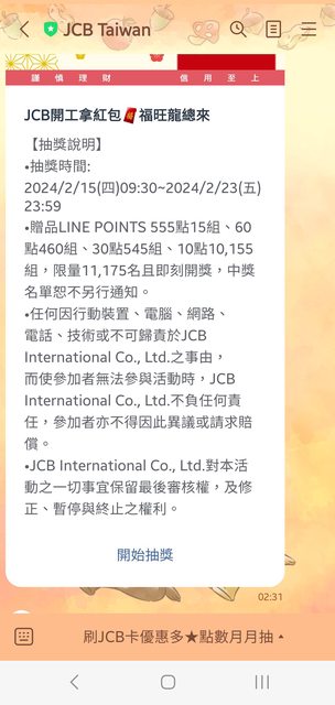 推 weitn29: JCB萬年沒中過,但每次都想抽看看,依舊 49.216.23.52 02/21 13:56