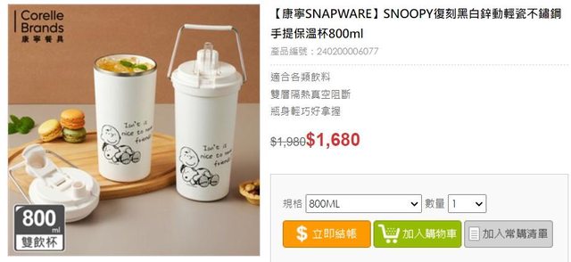 在7-11看到SNOOPY保溫杯本來想買 結果比價發現y購便宜超多 https://i.imgur.com/nFWR8RD.jpeg