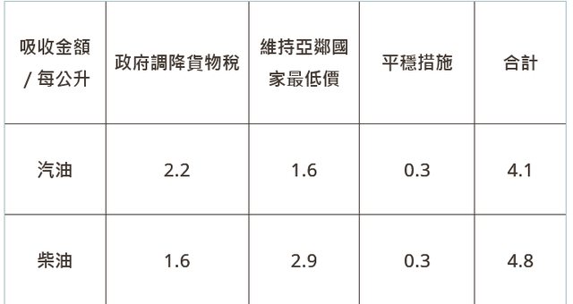 本週依油價公式及政府調降貨物稅(汽、柴油每公升各共2元及1.5元)調整國內油價, 並持續以亞洲國家最低價及平穩措施運作,協助穩定國內油價,汽、柴油各需調整之1.9 元及3.2元均由台灣中油吸收,113年累計至1月底止,台灣中油共吸收約9.97億元。調價 後各式油品參考零售價格調幅及調整金額如附表,實際零售價格以各營業點公告為準。( 台灣中油與亞鄰各國油價比較表,請參考全球資訊網https://www.cpc.com.tw之產品與服 務--亞鄰各國比較表) 台灣中油股份有限公司 發言人:林珂如執行長 聯絡電話:02-87258125、0921-855-697 Email:[email protected] 新聞聯絡人:黃如妤組長 聯絡電話:02-87258548、0932-205-375 Email:[email protected] 其他相關業務詢問請洽本公司1912客服專線 相關檔案 -- 打h92j/vu0c0jjoxupeoe.e0 https://i.imgur.com/vLRcZ0p.jpg