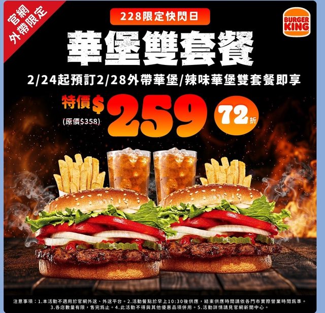 0228限定華堡雙套餐$259 限外帶 只有今天 華堡是首選 http://i.imgur.com/FGsblpO.jpg