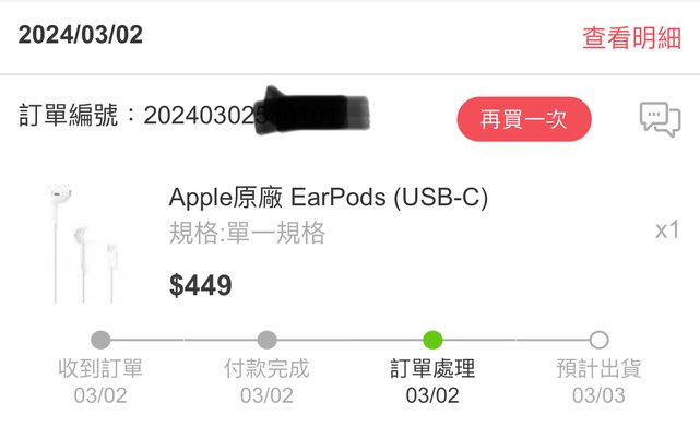 最近在找Earpods usb-c的版本 看到friDay只要449 就直接下單了 https://i.imgur.com/lAIXpeq.jpg