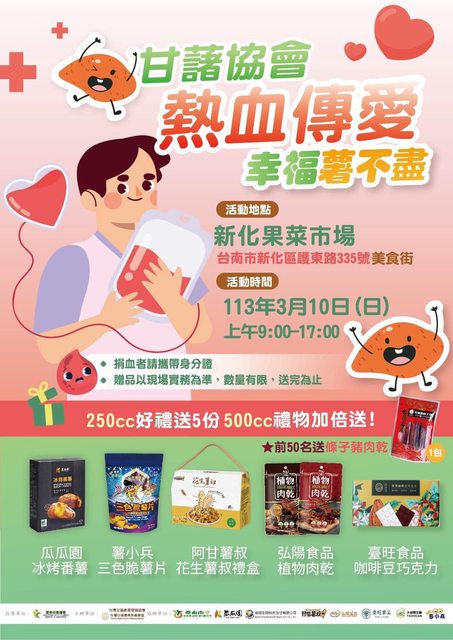 ▏▎▍▋▊▉ [雲林/嘉義/台南地區] ▏▎▍▌▋▊▉ ﹊﹊﹊﹊﹊﹊﹊﹊﹊﹊﹊﹊﹊﹊﹊﹊﹊﹊﹊﹊﹊﹊﹊﹊﹊﹊﹊﹊ 《台南捐血中心官網:https://www.tn.blood.org.tw/Internet/Tainan/index.aspx 〝〝〝台南捐血中心臉書粉絲團:https://www.facebook.com/tnblood〞〞〞 3/10(日):台南新化果菜市場 09:00~17:00 送美食好禮五份/加倍送 #前50名加贈豬肉乾 https://i.imgur.com/W6t2wq6.jpg