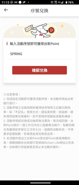 如圖,Richart Life輸入SPRING有一點 http://i.imgur.com/7ugSTUU.jpg