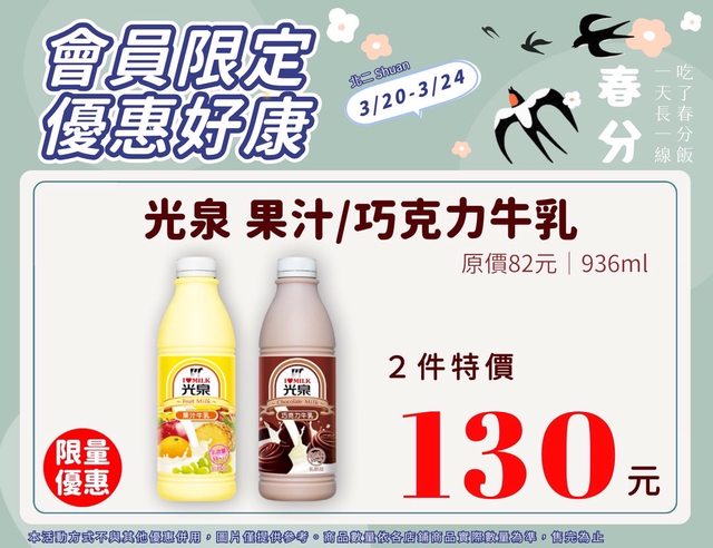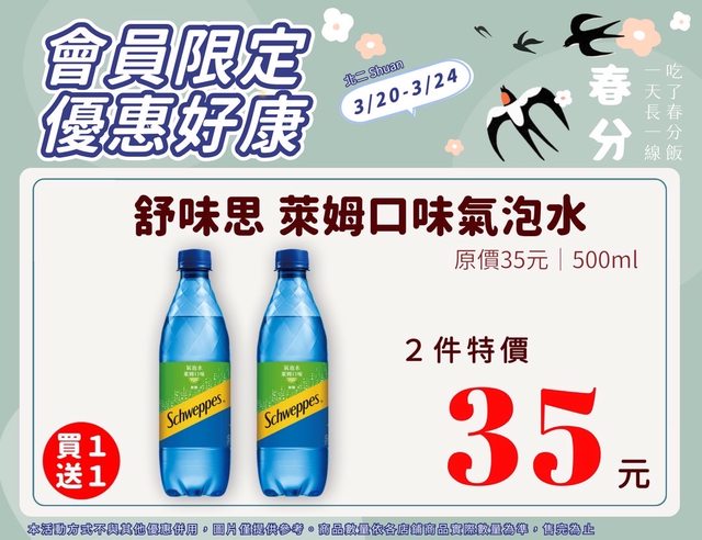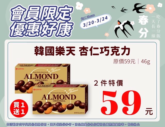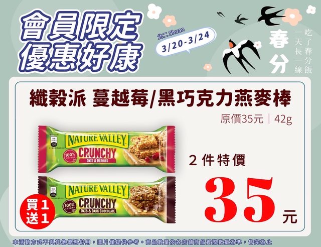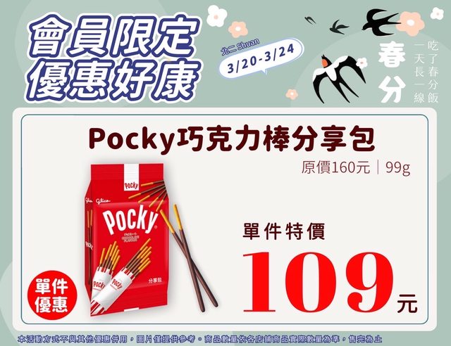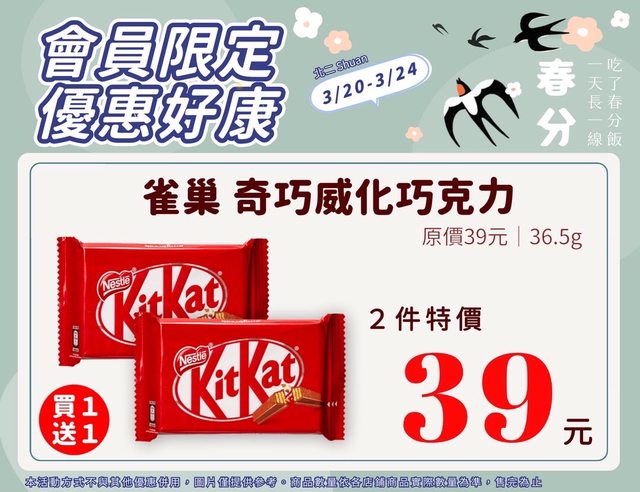 【活動名稱】:會員限時優惠 【便利商店/廠商名稱】:全家 【活動時間】:2024/03/20~2024/03/24 【活動內容】: https://i.imgur.com/3KdDMXC.jpg