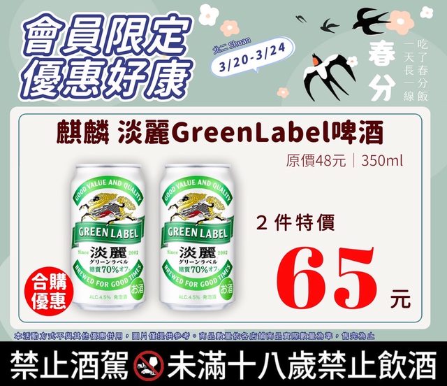 matsuzaca: 麒麟淡麗常態3瓶99,所以這優惠只 36.229.12.16 03/16 23:27
