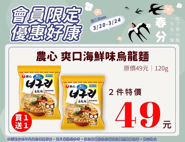 mandydan1222: 又可以屯烏龍麵了 42.72.198.235 03/16 15:35