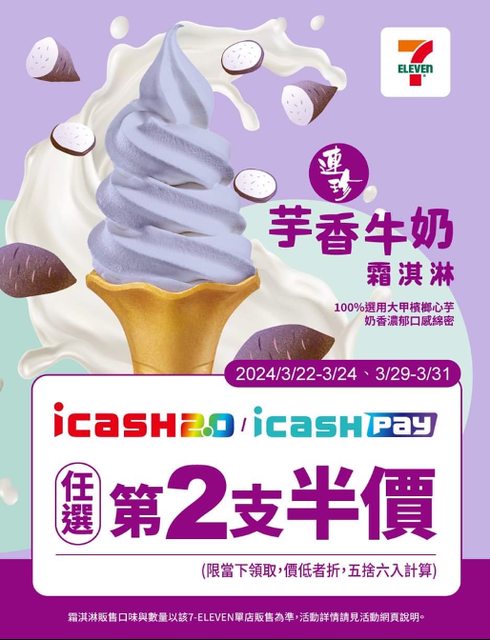 3/22(五)~3/24(日)、3/29(五)~3/31(日) 活動期間用icash Pay或icash卡結帳享第二支半價 https://i.imgur.com/RXkByxs.jpg