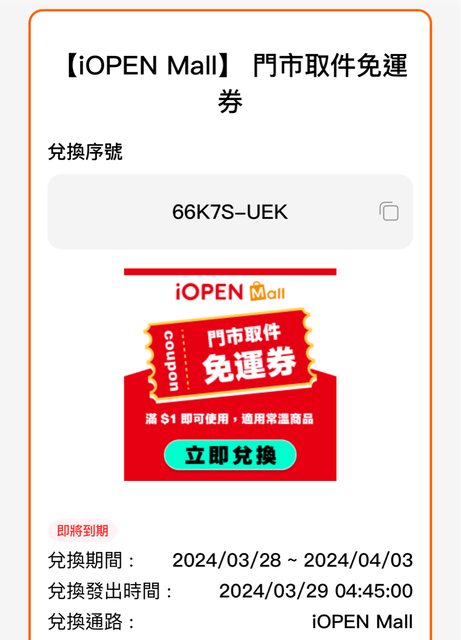 kiwikiwibobo: 謝謝分享,免運券已取 114.37.36.120 03/31 23:26