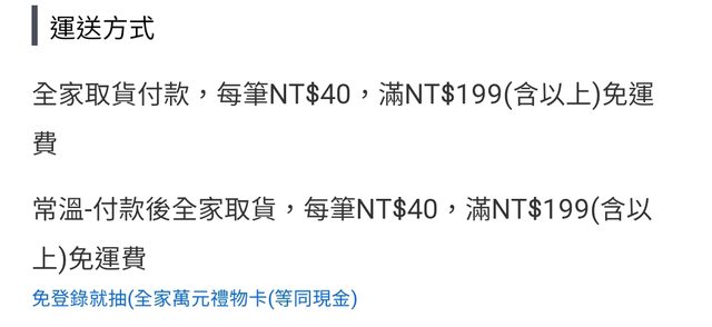 這次全家超取199免運 http://i.imgur.com/nRc9ATl.jpg