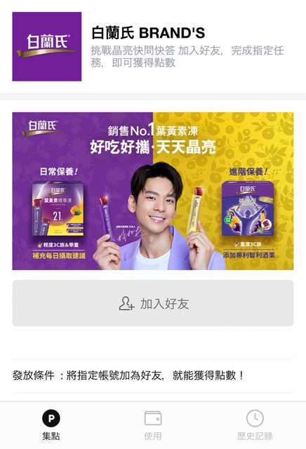 加好友得Line Points 1點 https://i.imgur.com/nuvUU7l.jpg