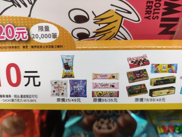 Mathez迷你松露型可可(原味/鹽之花) 35g 效期2025.2.18 49元 → 10元 TOTO小熊巧克力蛋糕 25元 → 10元 明治巧克力 79~99元 → 10元 (上一檔特價過了 應該找不到了) https://i.imgur.com/0JZq8xR.jpeg