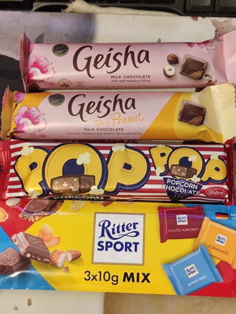 芬蘭蓋莎榛果夾心牛奶巧克力 37g 芬蘭蓋莎榛果夾心花生巧克力 37g 效期2024.07.05 55元 → 10元 vobro 爆米花夾心巧克力 43g 效期2024.06.19 35元 → 10元 德國力特迷你可可製品(3入裝) 10g*3 效期2024.05.24 49元 → 10元 https://i.imgur.com/hhdD8f7.jpeg