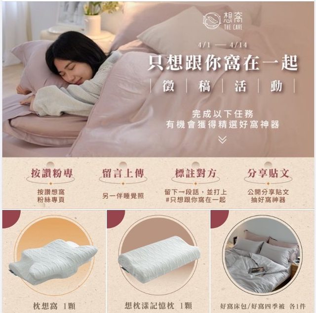 有缺枕頭/床包/被子的, 趕快趁另一半晚上睡著偷拍一張上傳吧XD https://i.imgur.com/3CUNHq6.jpg