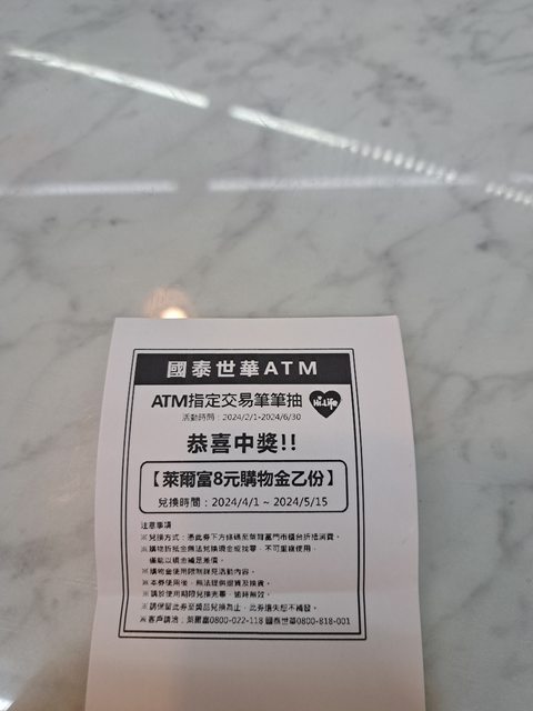 老活動了,就不多說了 跨行提款前5筆,每一筆必中獎 獎金8元, 嘻嘻 台新轉國泰了 https://i.imgur.com/eqPGS8u.jpg