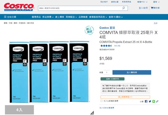 看到momo跟好市多的Comvita的蜂膠價蠻大的 四瓶1569跟一瓶1580這真的沒顯示錯????? https://i.imgur.com/tfAKUx4.png