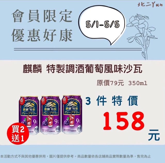 推 taisam23: 葡萄沙瓦之前在7-11買三瓶85折滿222扣22 123.192.167.20 04/28 12:20