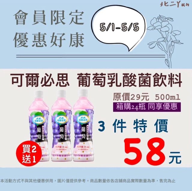 → taiwan0908: 只有可爾必思划算,但應該會被搶光 36.238.28.142 04/27 18:43