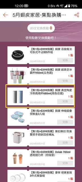 只要關注指定賣場就會有1點 拿1點可加價換商品