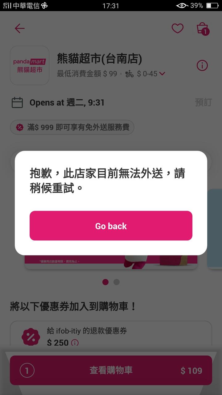 推 fatpig12345: 結果進APP看不到熊貓超市了 59.125.103.108 05/03 16:43
