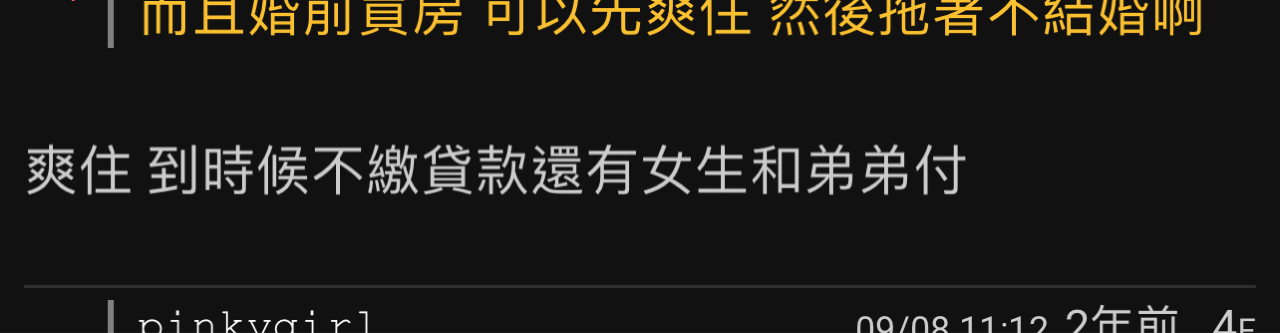 skytowerlll : 不少人看到婚前買房婚前財產,就會覺得住免錢正常阿 05/24 09:48