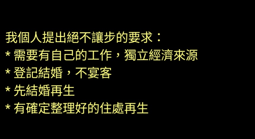 → yylane : 為前提,拿來當底氣跟男方談這些條件,看起來也沒有 06/06 13:53