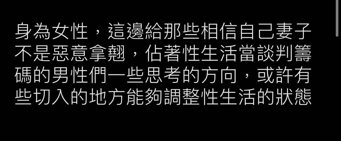 不知為何出現很多奇葩言論… 這裡是婚姻板,要經營的是婚姻關係,性生活不協調這種週期性出現的問題,常常有人很義 憤填膺 但把另一半當對手去思考問題,覺得對方就是要整人、要控制人、想要獨享利益所以才怎樣 怎樣,當然很容易走進死胡同裡 如果可以,建議把另一半當作是共同做專案的夥伴,遇到困難的時候以解決問題的態度提出 討論,才比較可能走出活路 當然夫妻間的關係自己最清楚,如果你無法說服自己和另一半不是競爭關係,那真心建議離 婚,結個婚枕邊人總是故意要讓自己不愉快,不覺得很累嗎…… 身為女性,這邊給那些相信自己妻子不是惡意拿翹,佔著性生活當談判籌碼的男性們一些思 考的方向,或許有些切入的地方能夠調整性生活的狀態 1. 確實女生做愛很看感覺,床頭吵床尾和應該不適用於多數女性 如果你們感情狀況不佳建議先想辦法和緩關係,你遇到的其實是夫妻感情問題,不是性生活 問題,同時切忌不要讓人有為了做愛才想調整的感覺,常常不會有效果 2. 做愛意願的推力可能會比較多,比如說心情不對、太累、身體不適…都有可能造成女生? 想做,不像某些男生不論再累狀況再差,都可以來一發 請盡量溝通排除這些問題。我印象很深刻曾經有板友分享自己睡前很累不會想做,改成早上 起床就比較有意願,結果有男生直接說這個叫做不想做找藉口,無視人家性生活就真的有改 善了…… 請相信這些原因都可能是真的,真心無法相信的話又回到前面的夫妻關係問題,建議離婚 3. 女生比較容易因為成長的環境而對性較為保守(我自己也無法跟其他人聊性事),這很? 易增加溝通的困難,可能她自己也不知道問題在哪,或是她根本講不出來 這我其實也給不出什麼好建議,也許可以求助專業人士,或是如果你們關係不錯,可以慢慢 一層一層地讓她放鬆,覺得講這些想這些不是什麼大不了的事,比較有機會挖掘出真正的原 因 只能說請多擔待,並請相信她不是故意要這樣,就好像有些個性較壓抑的人無法直接講出自 己的內心話,其實常常是無意識的 當然這不是你的責任,不想擔待也絕對沒問題,還請自行評估 其實後面說的這幾點都很模糊籠統,主要是另一半不想做的原因可以有百百種,唯一解就是 溝通協調,溝通不了可以嘗試找專業人士協助 我的重點在前面就已經講完了,如果你還有心維持這段關係以及追求更協調的關係,真的不 要輕信某些過於憤慨的言論 網路上大家罵都罵很爽,真正生活是你自己在過,當然那些畫出來的靶,現實中真的都有可 能發生(無論男女),但你老婆是不是其一你理當最清楚 如果你真心覺得另一半就像某些人講得這麼糟糕,強烈建議早離婚早享受,沒什麼好討論的 -- ※ 發信站: 批踢踢實業坊(www.ptt-site.org.tw), 來自: 27.240.249.128 (臺灣) ※ 文章網址: https://www.ptt-site.org.tw/marriage/M.1690984379.A.89F