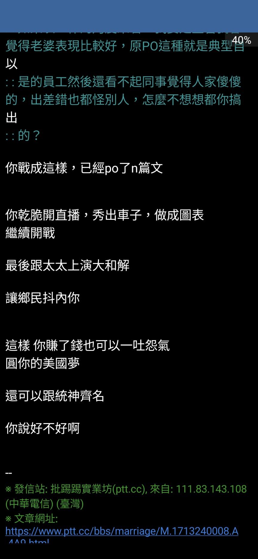 推 renna038766 : 支持版主!無腦惡意言論該收斂了!還婚姻板一個乾淨 04/18 00:44