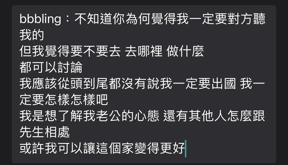 → ginny157 : 我就只是說 想跟先生出國 05/22 12:56