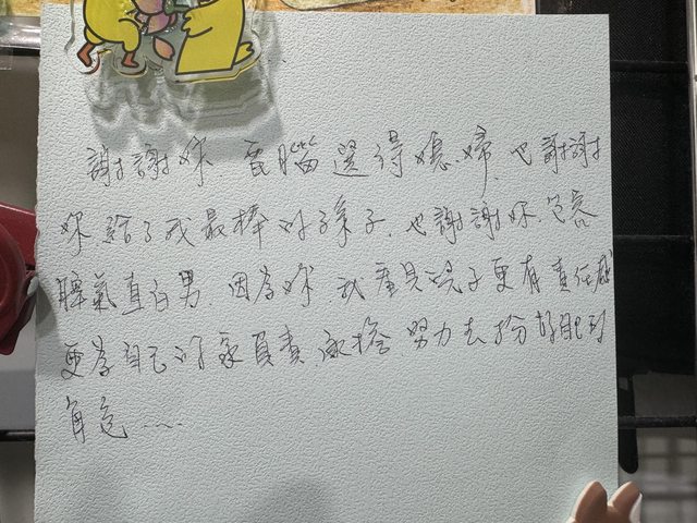 推 ggf : 妳和婆婆都好棒!婆婆字超漂亮(羨慕) 05/23 17:06