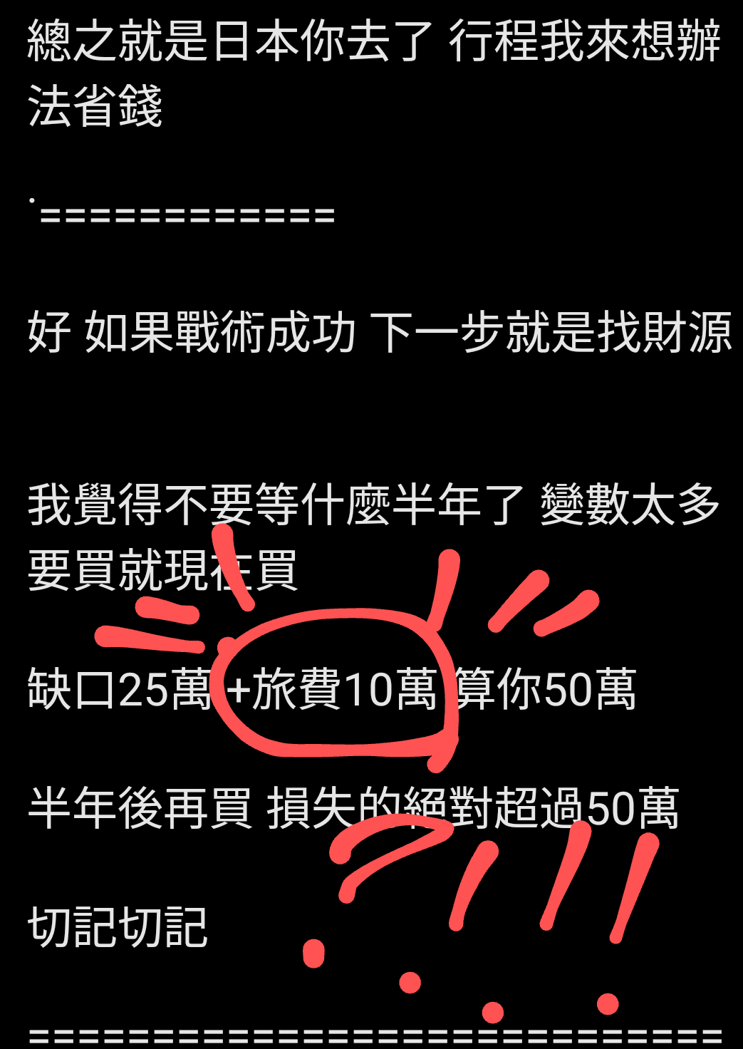 → levs : 裡面有一部份就是借來花在日旅,只是用買房包裝比 05/25 14:03