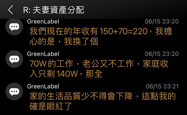 → jessica50431: 50萬就沒資格要求男方也出去工作了嗎?關鍵在於一 06/17 23:50