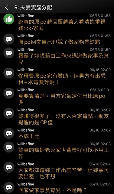 推 gr1031 : 家務育兒談好的分工該做的都有做 還要對方掏父母給 06/15 19:27