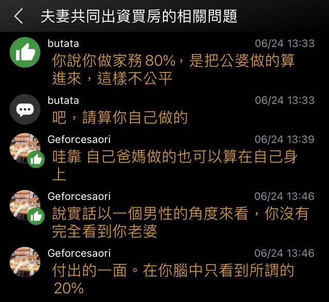→ NomeL : 公婆辛苦所以不是一個獨立個體?做的事都=他們兒子 06/25 08:57