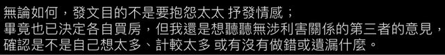 不是抱怨太太、抒發情感,那你發文的目的是什麼,發文又真的有解決了你的問題,釐清