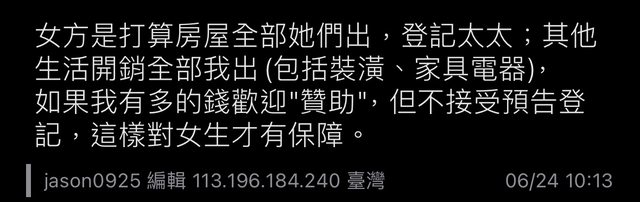 → kitten631 : 前面說出1/3後面說女方家要全出06/25 07:47