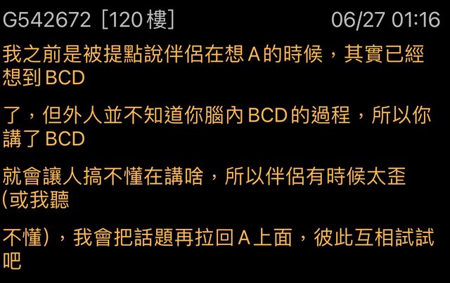 → G542672 : ,兩人溝通可以更順利,有時候就會出現你文中說的默 06/28 15:55