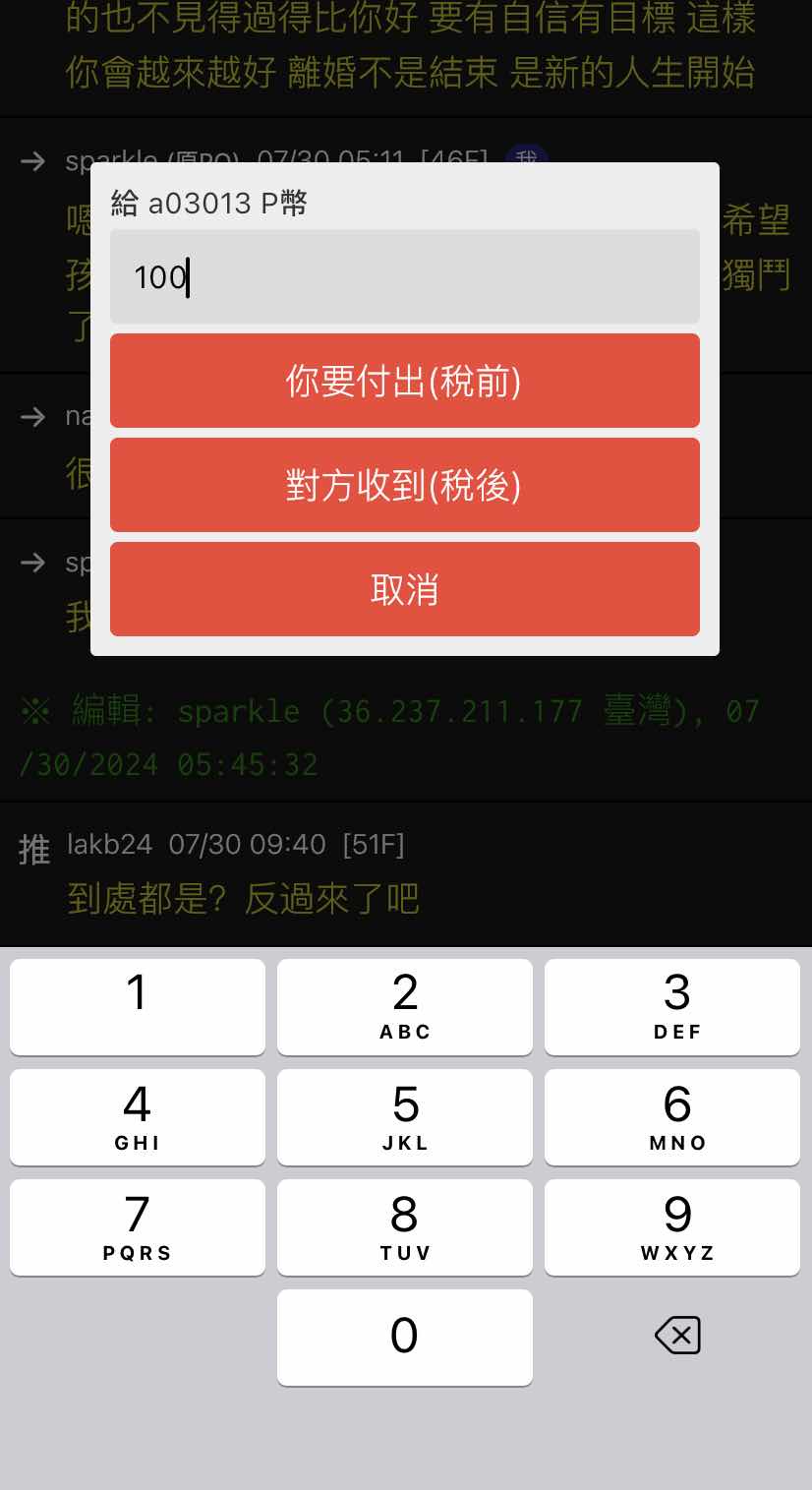 → sparkle : 以上兩位我都給P幣了 可以了嗎 07/30 11:36