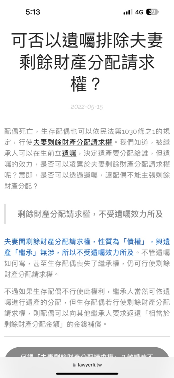 → candyrainbow: 爸就是直接先拿剩餘財產分配的一半 08/01 14:43