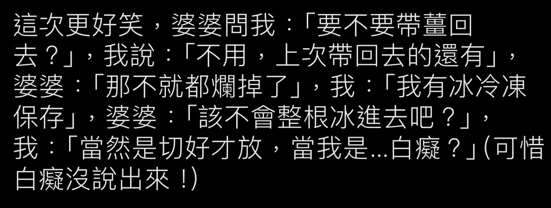 → artning : 給她。又不是只准婆婆對我單方向輸出。大家交流交流 10/29 11:59
