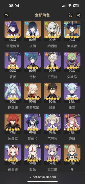 因為我只有這些角色,下半除了夜蘭蒸發外沒有其他角色能換