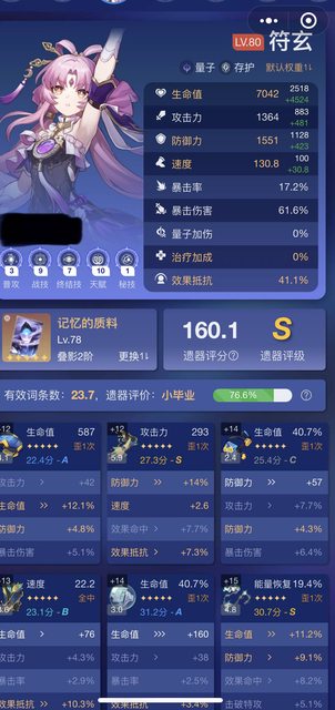 生命值對符玄來說是最重要的屬性