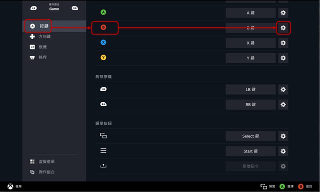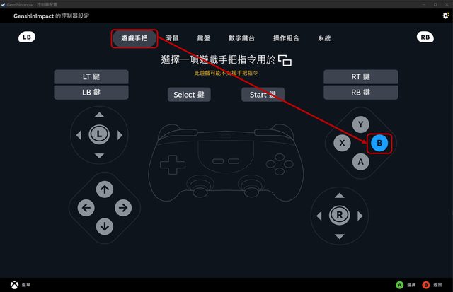切換到「遊戲手把」標籤→選擇B鍵