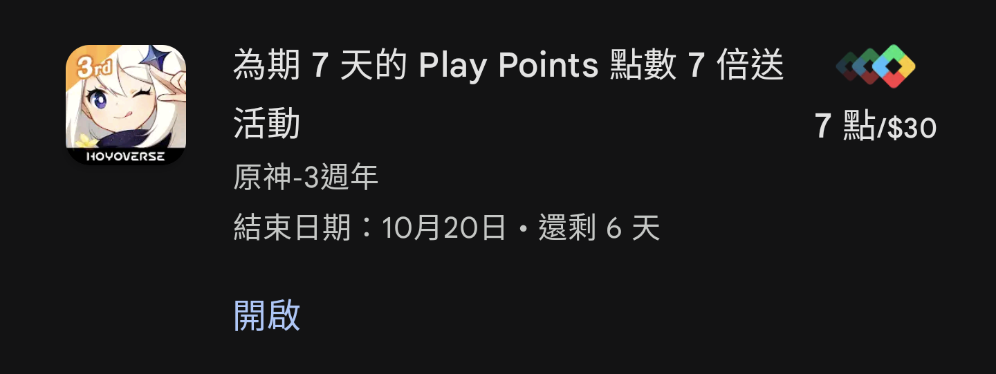 推 soysfox0421: 我選擇日幣+Google play 原神300yen折價券 10/14 19:21