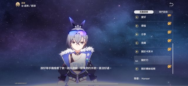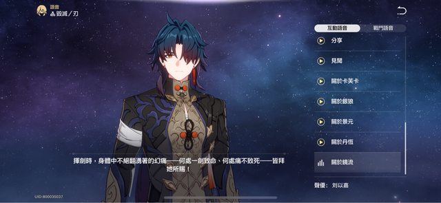 → ciled1: 刃對景元的語音語氣(日配)也有種埋怨景元旁觀的感覺 10/16 10:40