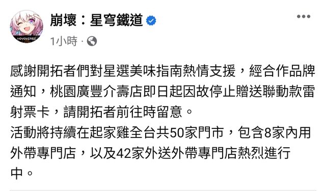 [鐵道] 桃園廣豐介壽店臨時停止起家雞合作