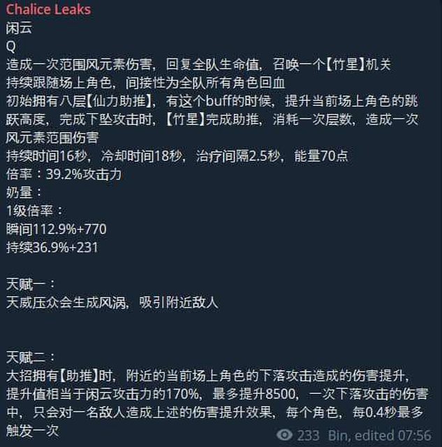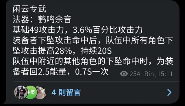 這次 閒雲+嘉明 剛好是一套「下落攻擊」組合拳 個人懷疑,這是在測試新體系 未來(火之國-納塔)可能就是主打「下落攻擊」了(? 稻妻2.5開始出精通轉傷害的狐狸;精通轉捕量的阿忍 楓丹4.4出「下落攻擊」,就很難不聯想是在為納塔測試新體系 ————————— 《登龍劍》(下落攻擊)其實開服後就有人在玩 但是很吃技術(至少對我純手機玩家算難)又耗體 組溫迪風場又佔隊伍格子,另外還剛需附魔角(又是佔一格子) 所以《登龍劍》一直以來都是偏整活向 而打『融盧』的迪盧克,就成了《登龍劍》的主要整活角色 (因為迪盧克大招會給武器上火附魔,能省格子;下落攻擊倍率也高) ————————— 如果納塔要主打下落攻擊,當然不可能硬性綁定閒雲 設計方向可能為(參考迪盧克): 大招- 動畫給怪造成一次傷害,並給武器上一層 水/火/冰 附魔 (草/雷打激化?也不是不行,但我水/火/冰附魔是奔著2倍增幅去的) 戰技- e可讓角色跳耀n次下落攻擊最高倍率的高度 或是開e期間的X秒內,可以跳的比平常高(類魈大招) ============== 個人是希望以後大劍角可以往「下落攻擊」的方向特化 否則現在大劍角幾乎被卡死… 不走「下落攻擊」特化,就只能往類北斗的後台方向走了 站場?看看現在不是白色物理,就是黃色物理… 打反應的都剩整活向了 QQ (四星國家隊?最先被優化出去的就是大劍了…) =============== 須彌讓刻晴起飛 下落攻擊能讓迪盧克起飛嗎? 0.0+ -- ※ 發信站: 批踢踢實業坊(www.ptt-site.org.tw), 來自: 1.175.82.77 (臺灣) ※ 文章網址: https://www.ptt-site.org.tw/miHoYo/M.1702999679.A.609