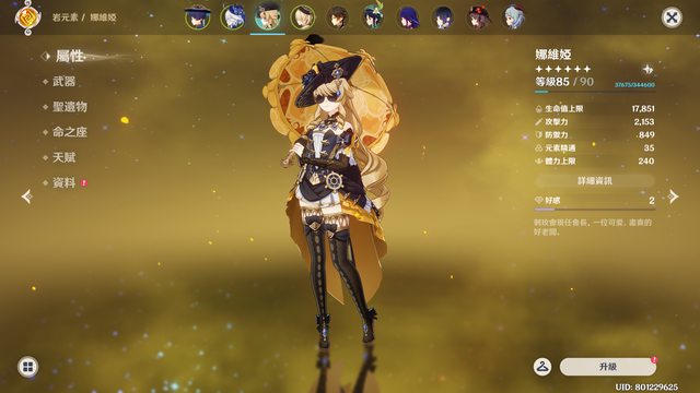 85級 天賦466 拿滿精魑骨 半日體驗感想是 "非常優秀" 本來在一片看衰的情況下我也沒抱太大的期待 畢竟成女、大劍、岩系、主線活躍,各種DEBUFF吃滿的情況 結果實際試用後覺得手感絲滑流暢,大劍揮舞不會卡刀 E技能可以迅速出傷,就算結晶未吃滿也能有不俗傷害 本來沒有100%確定要抽,所以連天賦書和突破材料都沒刷 所以天賦也是466,有很大的成長空間 但儘管如此,使用目前對岸的最優陣容 (鍾璃、芙芙、班神、娜維婭) 去打深淵也能E一砲20萬左右 0命完全體,可以E兩次所以充能也很有餘裕不會卡循環 雖然是攻擊%岩,但是吃結晶的關係增加了生存率 可以說是久違沒有毒點的女主C了 娜維婭,值得你擁有! https://i.imgur.com/JSkiMyy.jpg