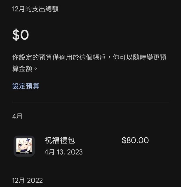 年底到了 剛看google商店跟三星商店付款記錄 我自己只有課原神跟鐵道 鐵道:月卡610日幣x3=421 原神:七張小月卡+兩次大月卡+60原石首儲=936 (有用優惠券) https://i.imgur.com/yQ9uMq5.jpg