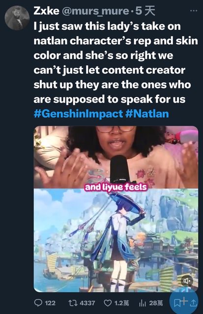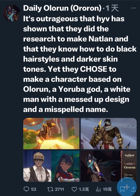 : 標題: [閒聊] 原神納塔角色膚色爭議持續發酵
