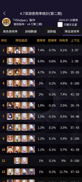 隊伍使用率 https://i.imgur.com/B7lrAJI.jpeg